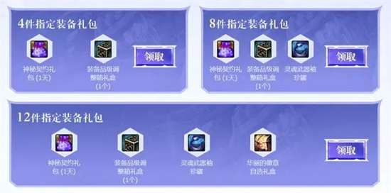 在史诗之路挑战会掉落装备,可以领闪光礼包,每周都会更新指定的装备,共3周。