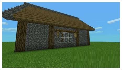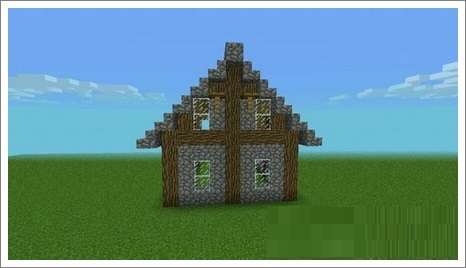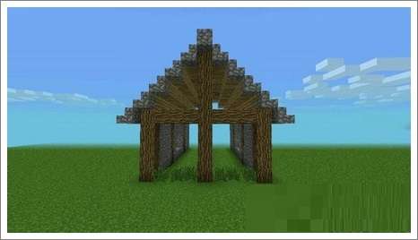 5.用圆石做墙面,然后把中间顶墙面掏空几格做玻璃。玻璃上面放夹板和栅栏。