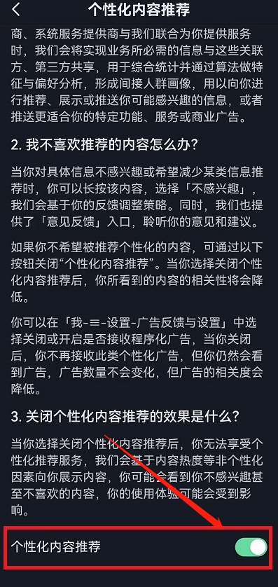 5、最后滑到最下方就可以看到个性化推荐开启按钮啦~