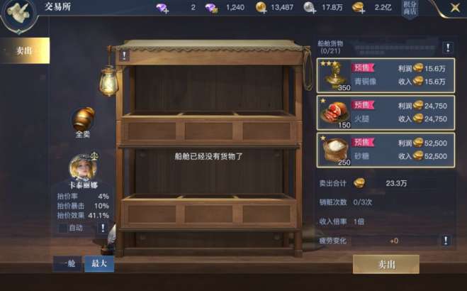 4.黑旗模式每天可出售三次抢来的货物,能获取的贸易币上限为100万。