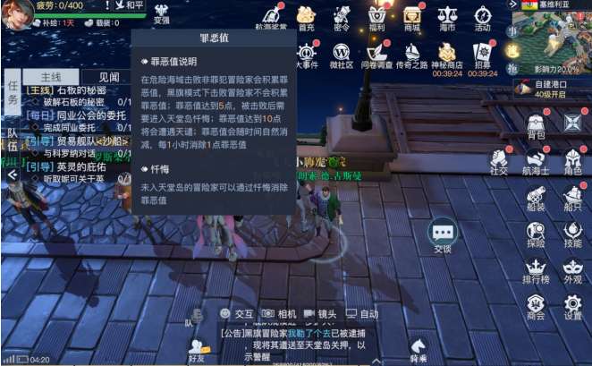 5.黑旗冒险家被巡航舰队或是其他冒险家击败后,将被遣送至天堂岛监禁,可以通过缴纳赎罪券来减免刑期。