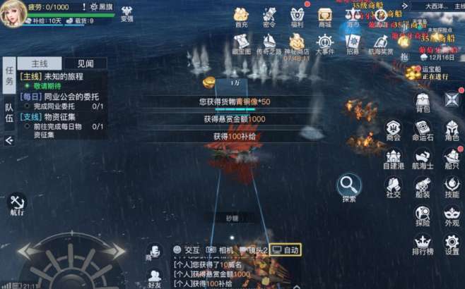 建议大家优先进行黑旗贸易来获取贸易币,若是在危险海域内遇到了战力比自己低的罪犯冒险家,也不要忘记上前拿取悬赏。