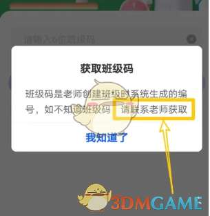 3、页面会提示直接联系老师即可获得班级码。