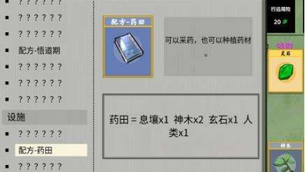 药田=息壤*1+神木*2+玄石*1+人类*1