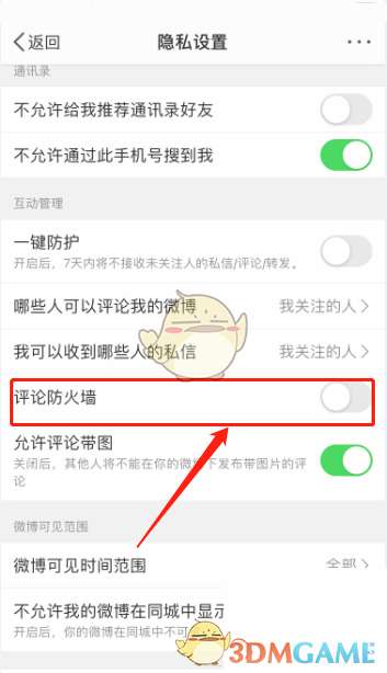 3、最后进入隐私设置页面,找到评论防火墙,点击开启即可。