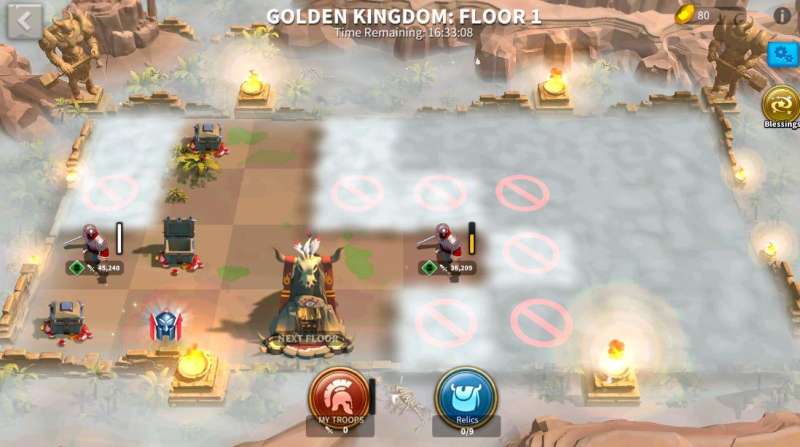 首先我们需要清楚,黄金之国并不是一个简单的副本,在这当中有着20关的挑战,我们需要持续的完成这二十场战斗。因此,在实战当中,兵力损失就是每一个玩家必须考虑到的问题,想要顺利的通关,就必须先处理补给。在兵种搭配方面,优先堆生命值较高的士兵,可以尽可能减少战斗的消耗,然后在选择祝福时,优先考虑回复祝福。比如慷慨战术,每过30秒都可以回复我方前排部队百分之一的兵力。还有百战不殆,可以在战斗结束之后,恢复部队15%已损失的士兵。