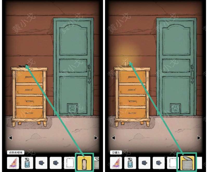 1.(门)点击柜子,打开第三个抽屉,获得【蜡烛】
