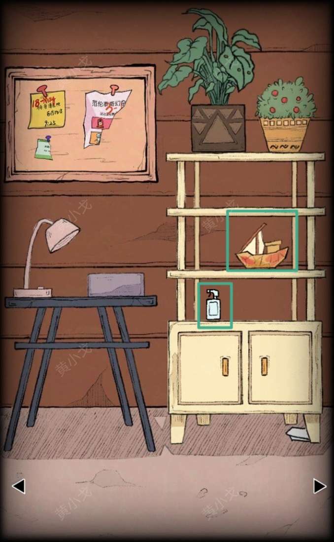 2.(桌子)在架子上获得【空喷壶】和【木雕船】