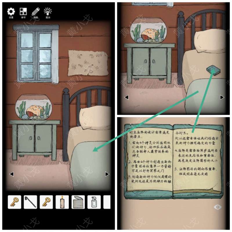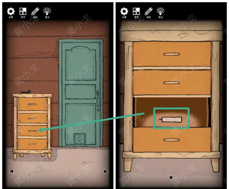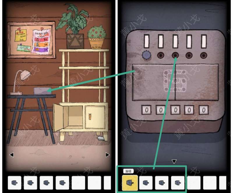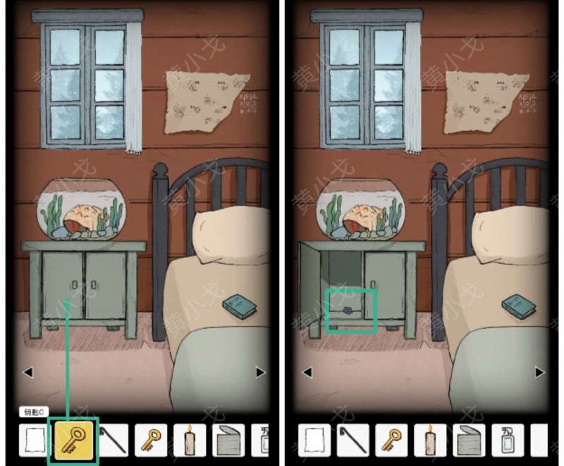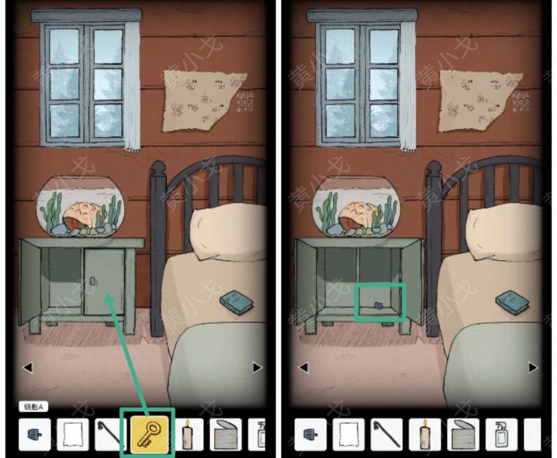 14.用【钥匙A】打开右边的柜子,获得【旋钮】