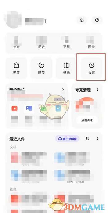1、打开夸克浏览器,点击设置。