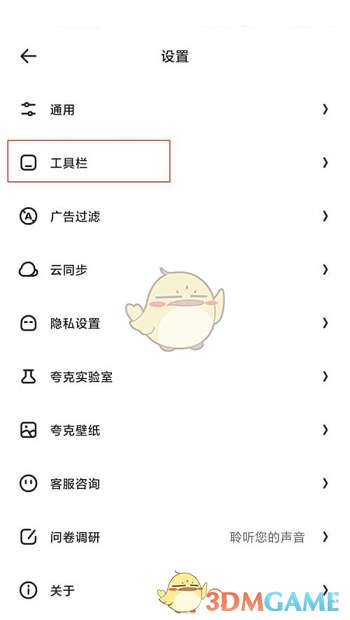 夸克浏览器工具栏怎么放上面?