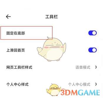 3、点击固定在底部,将该功能关闭即可。