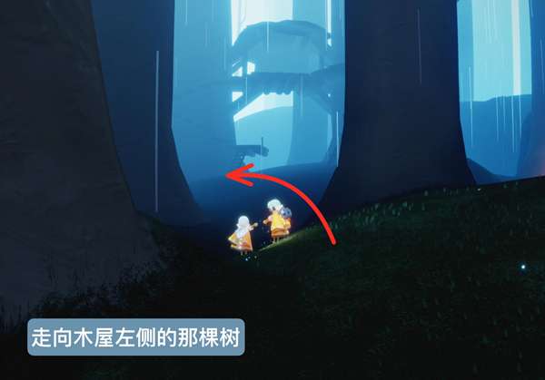 3、然后我们往树屋那走,走到树屋左侧。