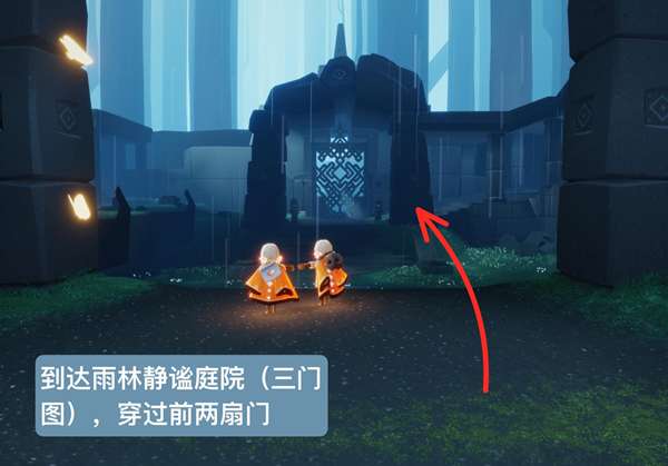 1、首先我们去雨林静谧庭院,有许多扇门的地图。