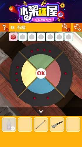 4.调查左边的圆盘,按照1红2黄3蓝4绿的颜色调整,按下OK键得到第二个石榴。