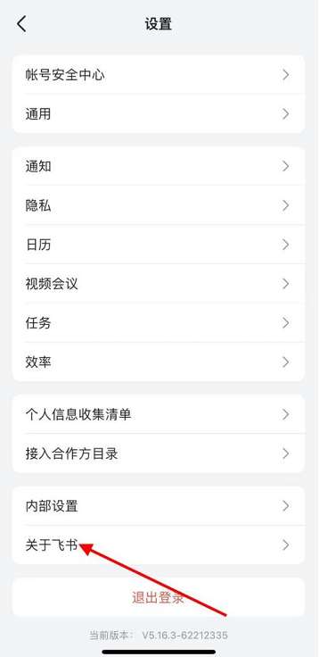 第四步:打开新页面,即可查看当前飞书APP版本号。