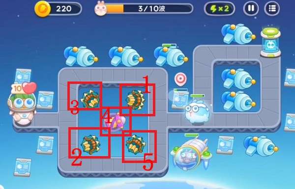 以上就是《保卫萝卜4》太空穿越第55关满星攻略,更多游戏攻略请持续关注十大评测网!