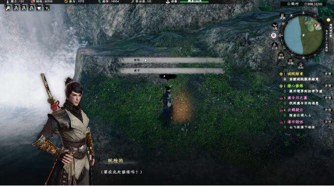 2、前往村外飞炼瀑(1090,1620)进行修炼,就可以完成任务。