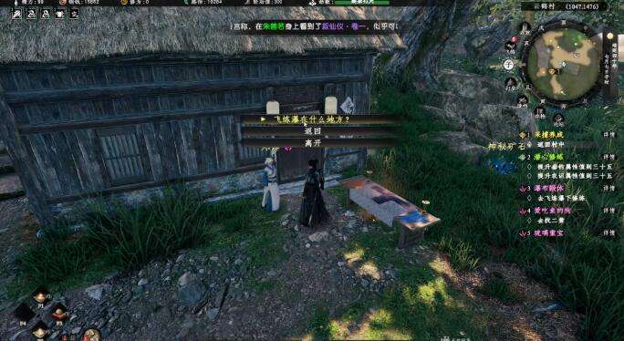 1、前往云鹤村(1047,1476)与郑婶对话,触发任务,得知可以在村外飞炼瀑练刀。