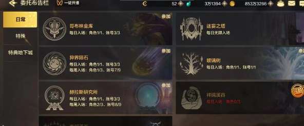 2、进入委托布告栏以后,在日常中可以查看各种特殊地下城。