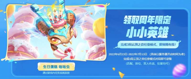 在云顶之弈游戏中很多玩家还不清楚,小小英雄生日蛋糕嗡嗡虫怎么获得。接下来就让小编给大家带来《云顶之弈》生日蛋糕嗡嗡虫获取方法,感兴趣的小伙伴们一起来看看吧。