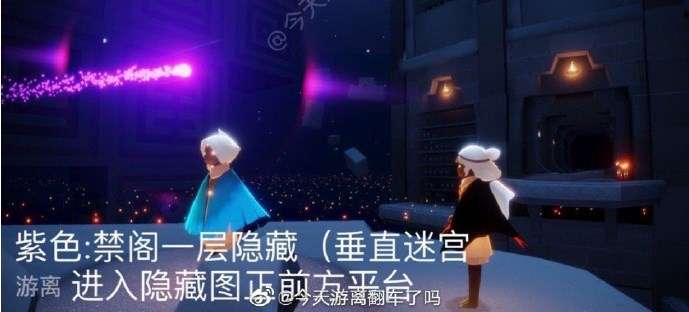 这个紫色光芒就是魔法季的心之灵,是在禁阁地图中。玩家进入禁阁的一楼,然后向右上飞的台子上飞,会有一个双人门,这是需要两个人合力开启。