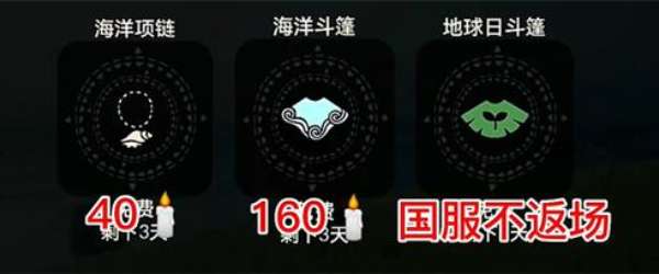 注:兑换一共需要275根白蜡烛,海浪斗篷160白蜡烛、海螺项链40白蜡烛、乌龟项链60白蜡烛、珊瑚发饰20红心;