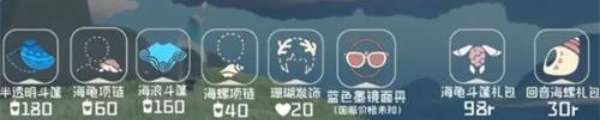 兑换物品:海浪斗篷、海螺项链、乌龟项链、珊瑚发饰、乌龟斗篷;