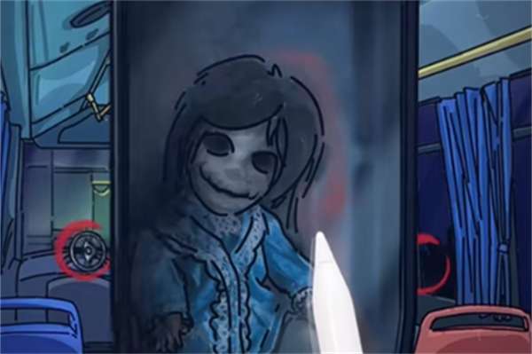 2、点击后视镜,上面会出现一个恐怖的娃娃。