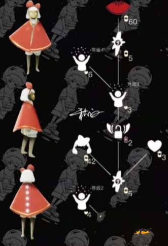 3、红色斗篷,这个红色斗篷和红色的蝴蝶结头饰颜色相同,搭配起来很好看,最贵,需要60根蜡烛。