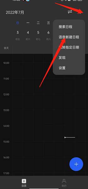 2、点击上方的符号,然后选择【语音新建日程】。
