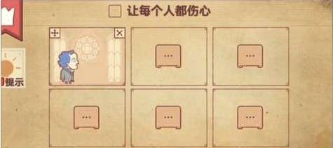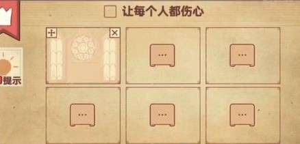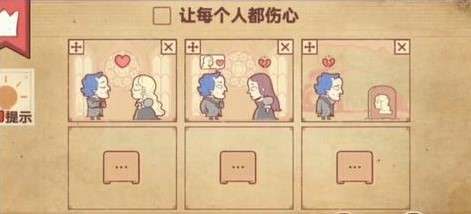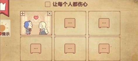 4、玩家先将婚礼放入第二个框框中,再将张友志和陈小梅放入第二个框框中,他们会心碎,如图所示。