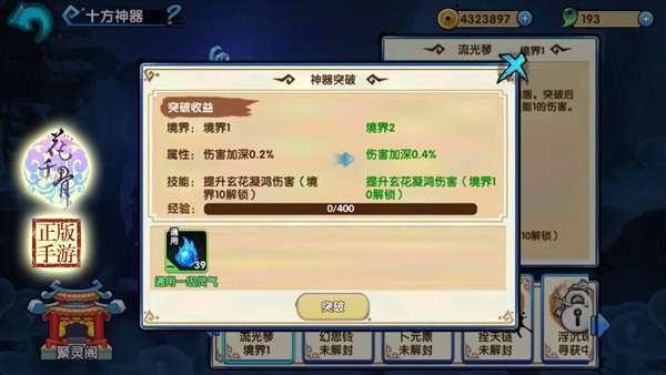 十方神器分别为流光琴、幻思铃、浮沉珠、卜元鼎、谪仙伞、玄镇尺、炎水玉、悯生剑、拴天链、不归砚,其中流光琴的效果是降低敌方的增益效果,破盾能力非常突出,还能增加角色仙术1的技能伤害。对于缺少输出的玩家来说,其绝对是最佳的辅助神器。幻思铃是防御向的神器,能够提升角色的暴击免伤,降低对手的攻击力。浮沉珠则是提升雷属性的伤害,还能增强仙术4的属性,在过副本秒boss的时候是一把好手。