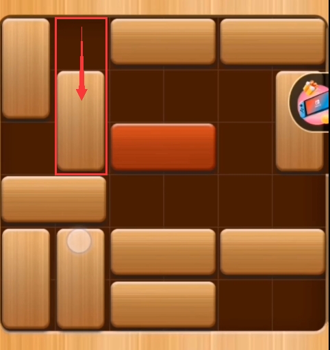 第二步:将第二列的竖立的横向的积木往下推(如图:)