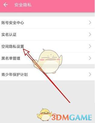 2、然后进入安全隐私的模块后,点击“空间隐私设置”;