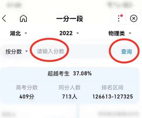 进入一分一段页,输入自己的高考分数,点击“查询”图标。
