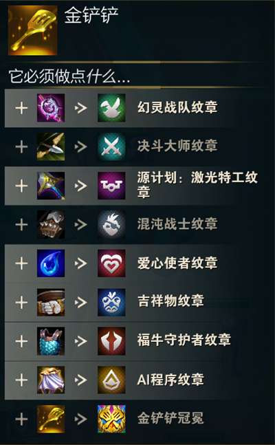 3、金铲铲+暴风大剑=源计划:激光特工纹章