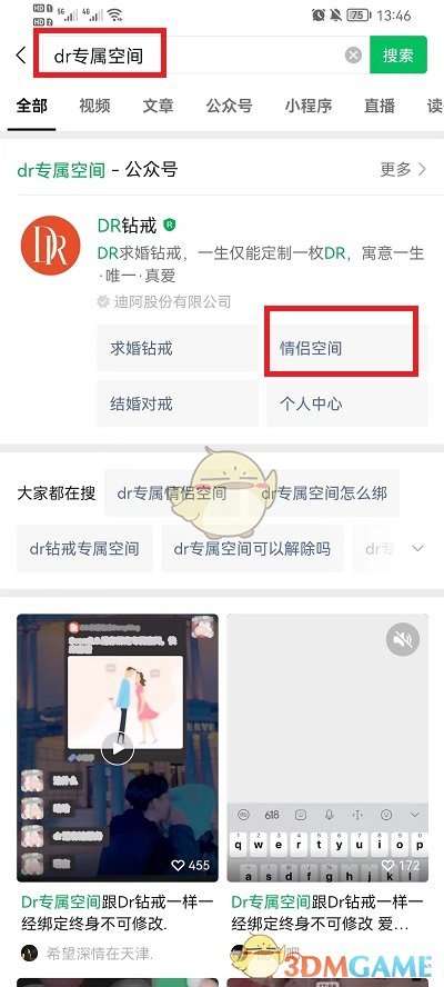 1、在微信中搜索【dr专属空间】在搜索结果出现之后,点击【情侣空间】进入到对应功能界面;