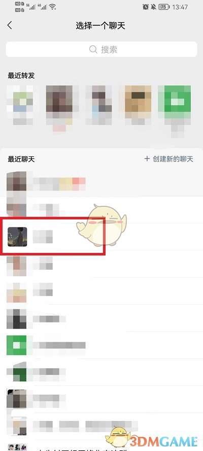 4、最后会跳转到微信选择聊天界面,可以找到自己另一半的聊天框,点击发送给好友。