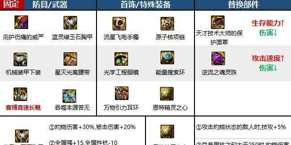 防具推荐:庇护伤痛的威严+蓝灵胸甲+机械下装+星灭腰带+所愿之行动