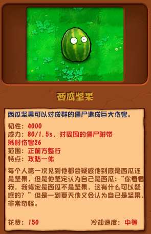西瓜坚果可以对成群的僵尸造成巨大伤害。