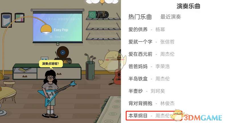 7、点击歌曲后,就会开始演奏了。需要停止演奏的话将乐器从小人身上拖走即可。