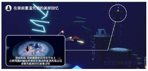 2、在禁阁重温先祖的美好回忆:禁阁四层,雨林星图右边浮空平台上。需摆出祈祷动作直到中间石碑完全变白,然后重温出现的先祖的收集过程。