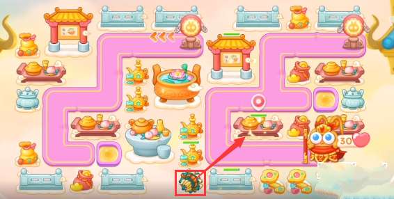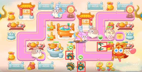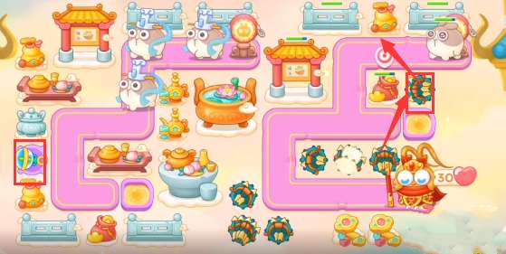 1、本关能够使用的炮塔是:泡泡塔、多重箭、毒针、船锚,这一关我们主要用多重箭输出。
