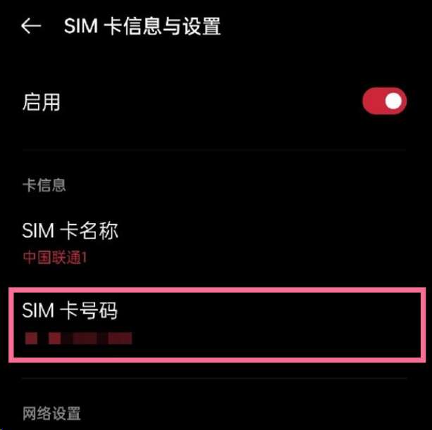 3、在卡信息选项,即可查看SIM卡号码。