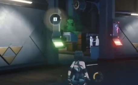 1、首先跟随任务指引前往下图中的位置,然后上二楼把绿色的电池放上去。