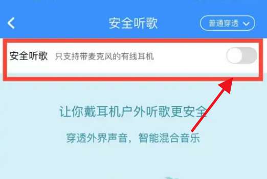 4、将安全听歌右侧开关开启即可。