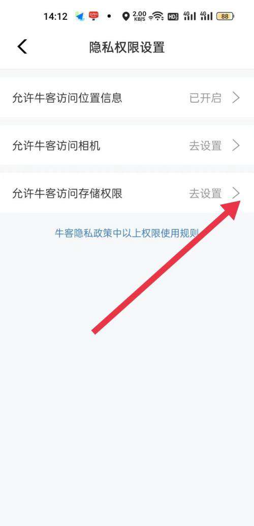 选择【允许牛客访问存储权限】点击进入设置即可;