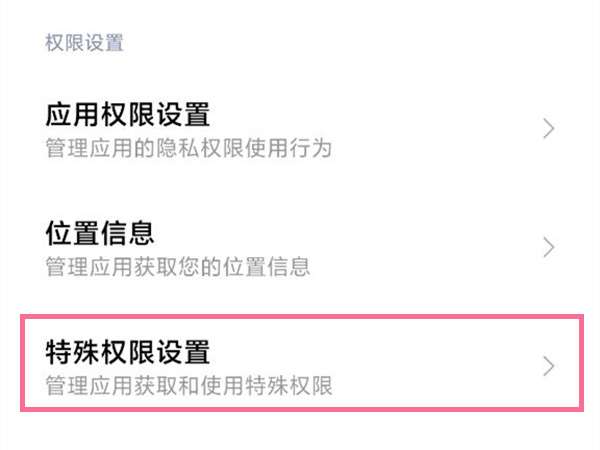 2、点击特殊权限设置。