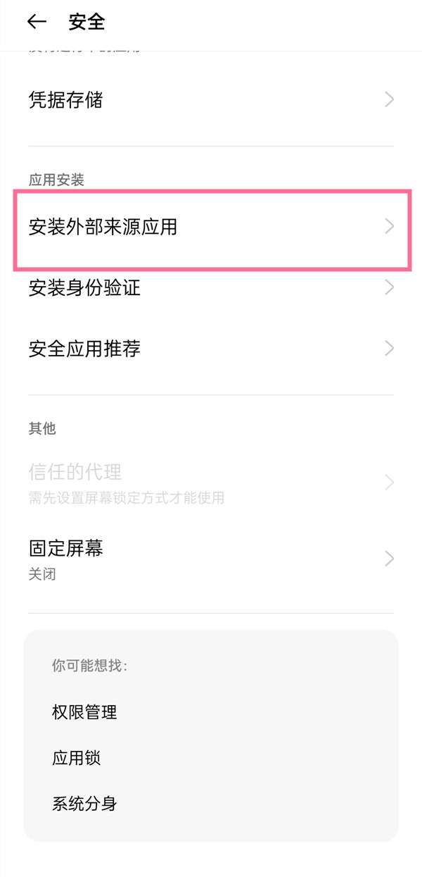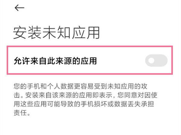 2、点击安装外部来源应用,开启该功能即可。